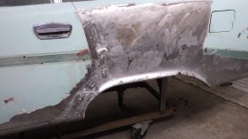 Chrysler Saratoga 1959 peltihommia, ruostetta ja oikomista